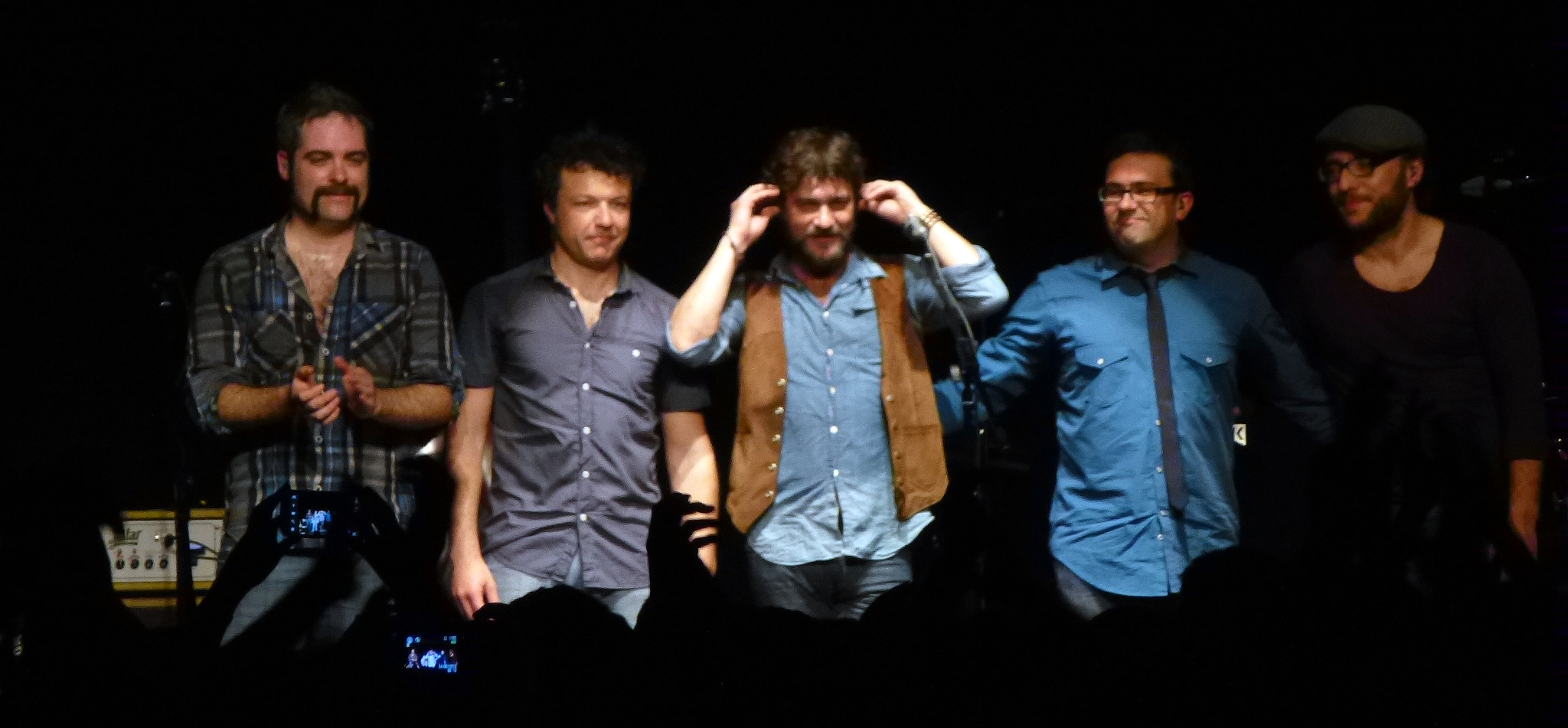 P1000273El planteamiento de concierto que Quique González ha diseñado en este arranque de gira combina minutos de rock desatado (puños cerrados, gestos desafiantes, guitarras encendidas, ¡se le llega a ver incluso con una SG!)  con la placidez de los medios tiempos acariciados por las guitarras acústicas, la mandolina o el violín. En los primeros conviven temas nuevos como ¿Dónde está el dinero?, Viejos capos o Tenía que decírtelo con otros de discos anteriores que no han perdido un ápice de pegada. Ahí están Suave es la noche, Hotel Los Ángeles o la versión más rockera de 39 grados, con un Quique desinhibido encendiendo la sala con versos de Bukowski.