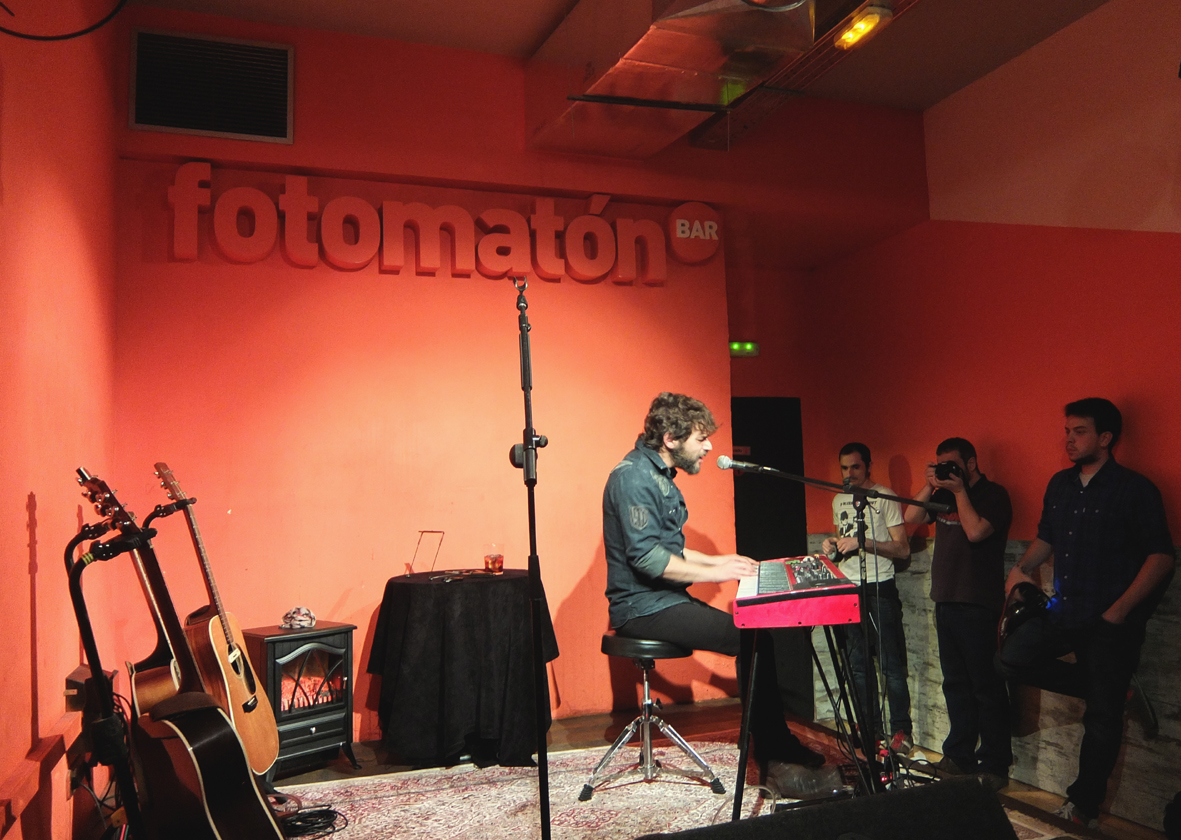 guitarraEste sábado 28 Quique González comienza en Salamanca su nueva gira, ‘Carta Blanca’, una serie de conciertos en solitario y en formato acústico en el que cada show será distinto, ya que el público tendrá, como el nombre indica, libertad para determinar el repertorio a través de sus peticiones. Sin embargo el músico no ha querido –o no ha podido– esperar en el vestuario el arranque de la gira, y en la noche del jueves saltó al campo a calentar, organizando en un bar de Madrid un ensayo general abierto a unos pocos incondicionales. Esa misma mañana, mientras bajaba hacia la capital desde su querido valle cántabro fue invitando por whatsapp a algunos amigos y conocidos, y por la tarde hizo extensiva la invitación a los 30 seguidores más rápidos de su página de facebook. Fue suficiente para que a las nueve y media de la noche la sala Fotomatón estuviera llena de rostros expectantes que observaban cómo Quique González subía al escenario sonriendo, se colgaba su Gibson y se disponía a dar carta blanca.