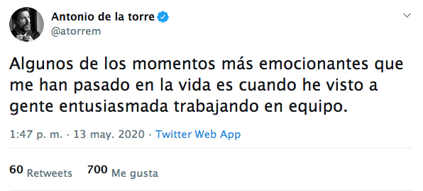 Sin embargo, a veces se produce el milagro y se materializan ocasiones en las que todos los involucrados reman en la misma dirección a favor de algo que es tan importante como para que el deseo del bien general se imponga a cualquier interés particular. Y en el mundo del espectáculo, tan nutrido de egos, curiosamente esas situaciones se producen con frecuencia. Lo resumía hace unos días Antonio de la Torre en un tuit: «Algunos de los momentos más emocionantes que me han pasado en la vida es cuando he visto a gente entusiasmada trabajando en equipo», escribió el fabuloso actor.