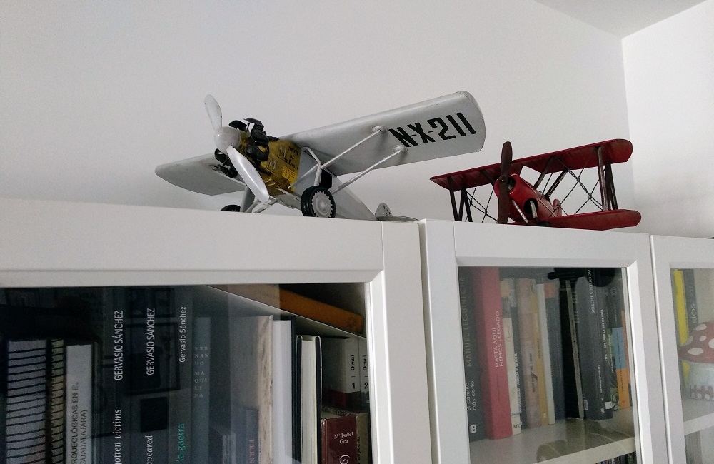 Quizás por su temática nos gustaba tanto escucharla a mi hermano y a mí, en esos años ya nos dedicábamos a hacer volar aviones en el campo de fútbol. También porque se trata de una canción triste, con una letra un tanto naíf que habla de dramáticas circunstancias, y a mí ya desde pequeño me iba la marcha. Ayer la busqué a propósito y la pinché un par de veces dejándome envolver por la nostalgia. Después seguí teletrabajando en el rincón que me he montado estos meses en el salón y que es uno de mis favoritos, entre una librería repleta y la guitarra Gretsch que una noche me regalaron mis amigos. Sobre esa librería descansan dos aviones decorativos de metal. Uno es un biplano rojo que bien podría ser la réplica del Albatros con el que el que von Richthofen, el auténtico ‘Barón Rojo’, derribó a un montón de enemigos antes de comenzar a pilotar el mítico Fokker de tres alas. El otro avión es la réplica exacta del Spirit of St. Louis. Ambos los compré hace años y, sin hacerles demasiado caso, han ‘sobrevolado’ ya tres mudanzas. Pero nunca hasta ayer caí en la cuenta de por qué siguen ahí.